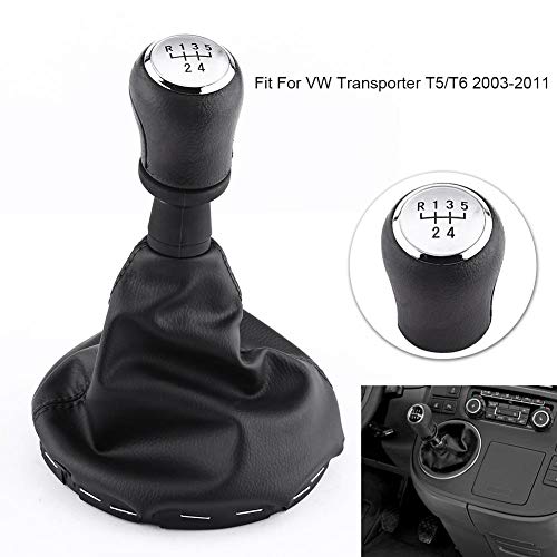 5 Speed Gear Shift Knob Manual Black Gear Shift Knob Kit Gaiter Boot Cover Leather Gear Stick Cover Dust-proof Replacement for Transporter T5/ T6 (2003-2011)