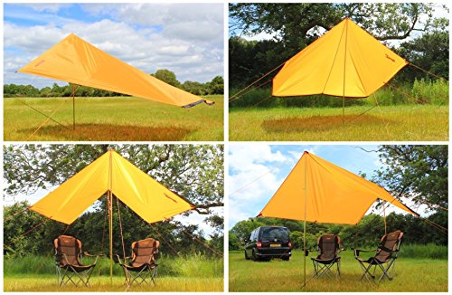 Includes: Canopy with 8 pre-attached guylines, 3 x sprung-sectioned galvanised steel poles, 8 x steel rock pegs and zipped bag with carry handles and sewn-in instructions