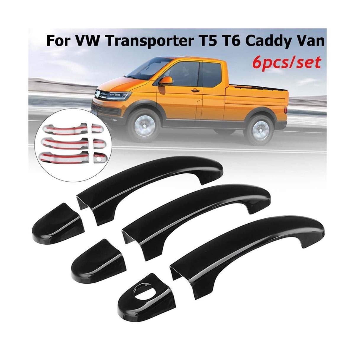 XHSM Set ABS Gloss Black Car Door Handle Covers For VW T5 TRANSPORTER 2003-2015 For T6 TRANSPORTER 2015-up For CADDY VAN 04-15 Door handle decoration